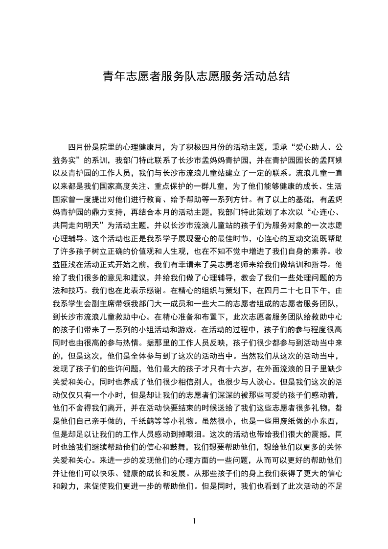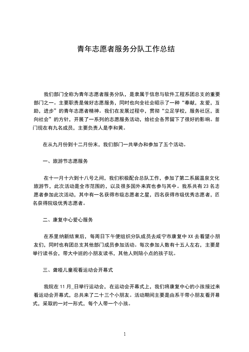 青年志愿者服务分队20__年_月_日