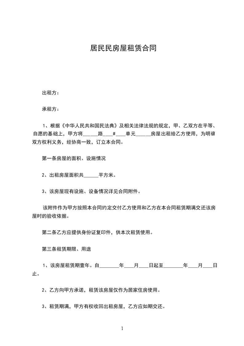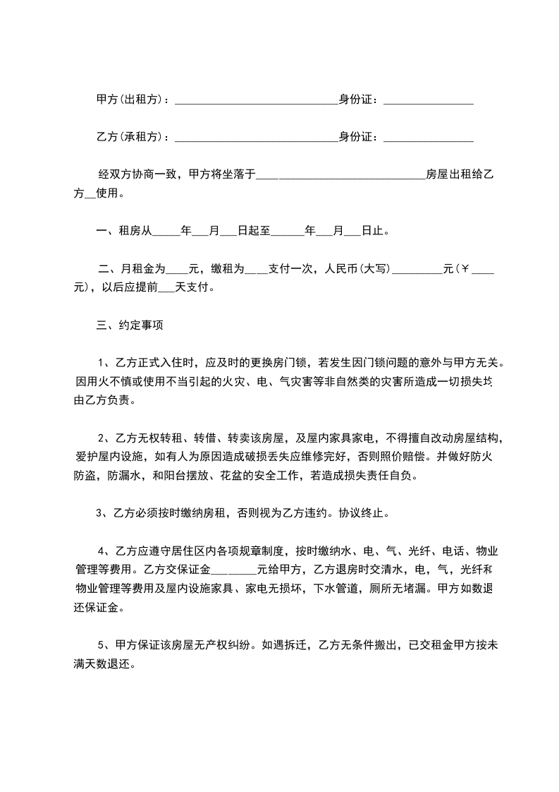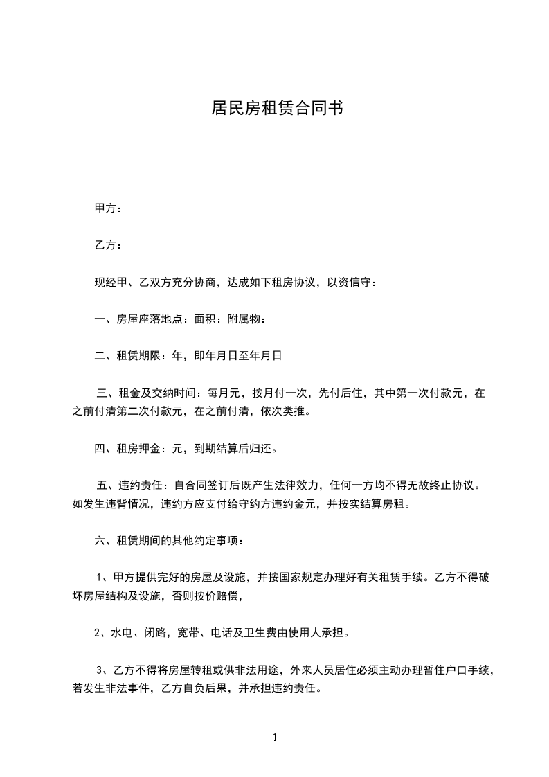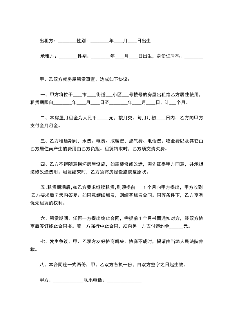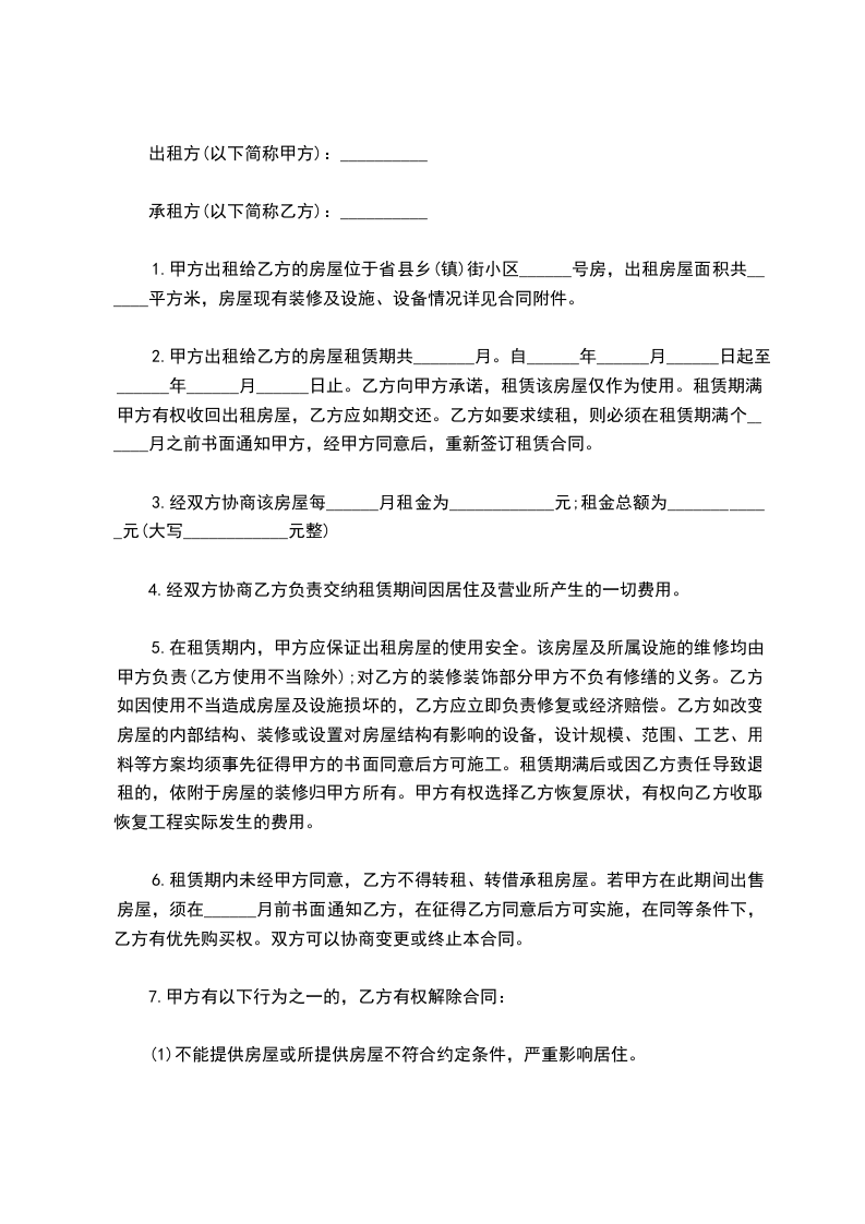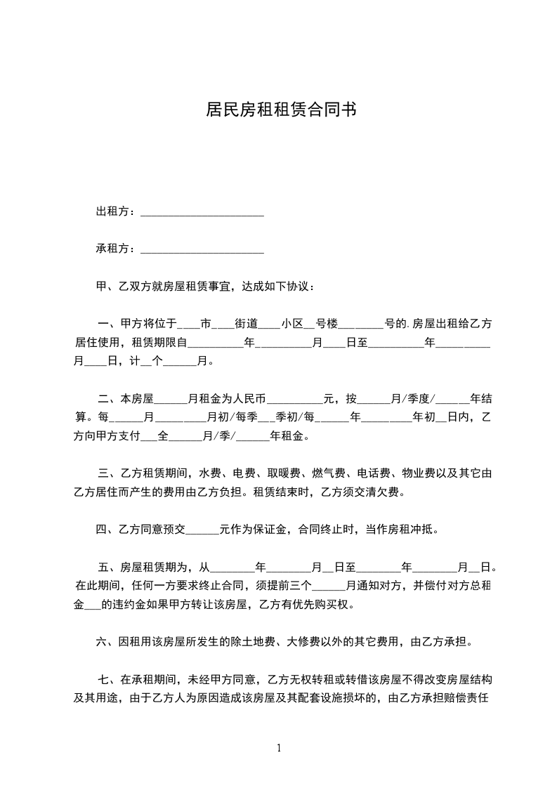 一、甲方将位于____市____街道____小区__号楼________号的.房屋出租给乙方居住使用,租赁期限自__________年__________月____日至__________年__________月____日,计__个______月。