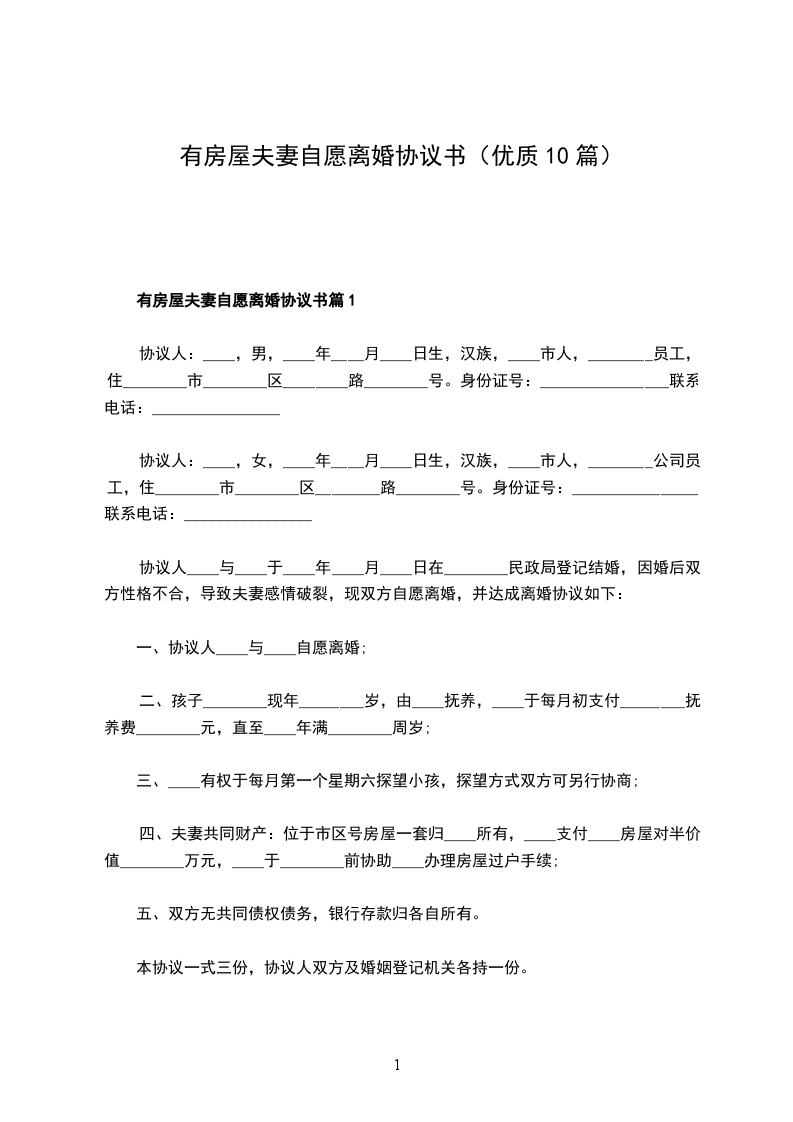 六、本协议书一式三份,男女双方各执一份,婚姻登记机关存档一份。