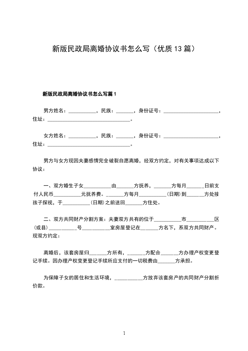 新民政局离婚协议书怎么写篇13