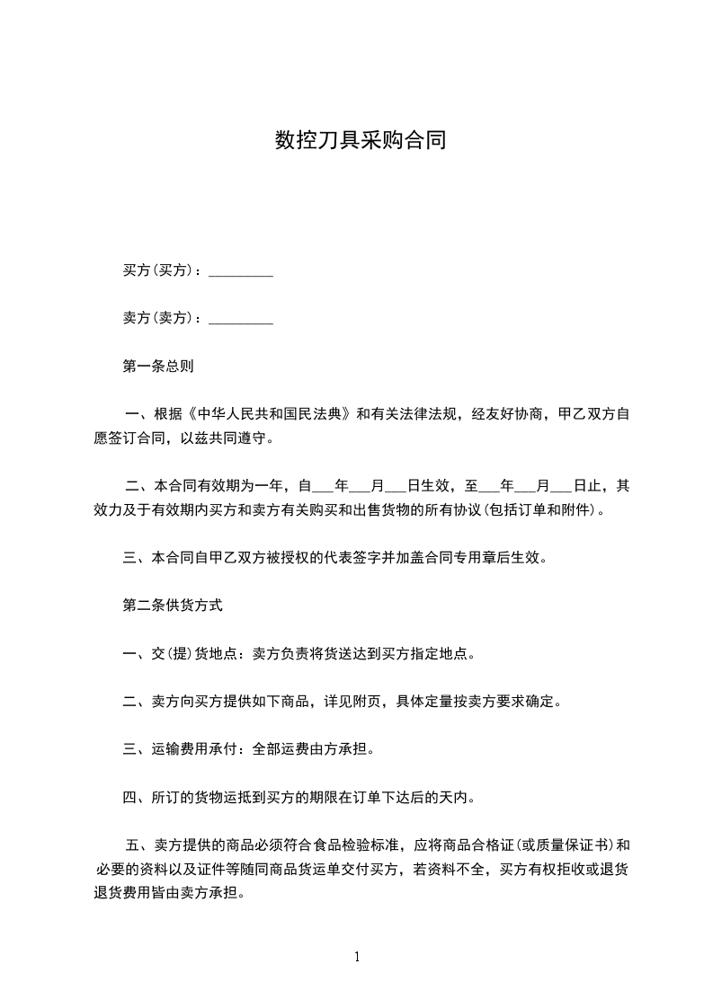 二、本合同有效期为一年,自___年___月___日生效,至___年___月___日止,其效力及于有效期内买方和卖方有关购买和出售货物的所有协议(包括订单和附件)。