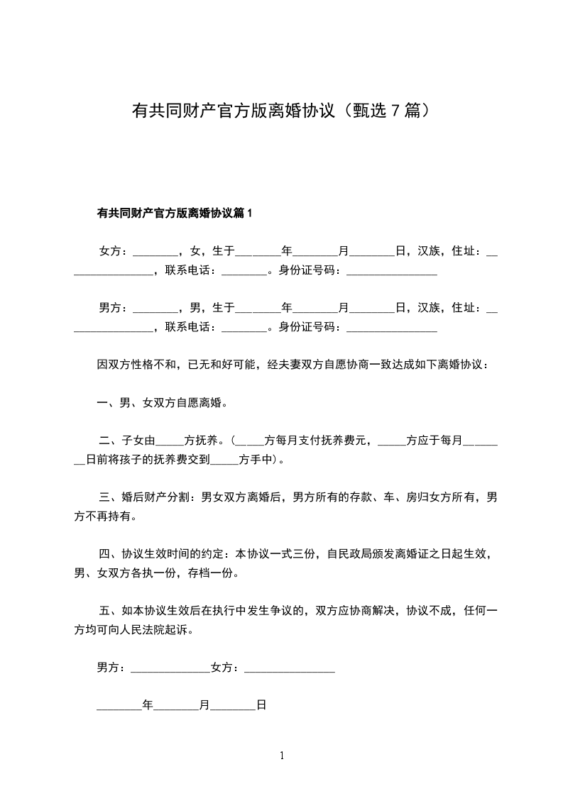 有共同财产官方版离婚协议篇7
