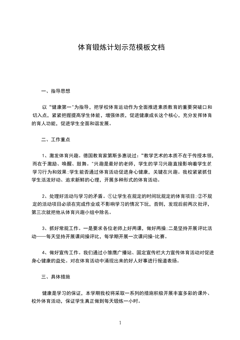 以上是我个人的身体锻炼计划,常言道:“生命在于运动。”我会坚持按照自己的计划好好锻炼,争取早日将自己的身体素质提高。
