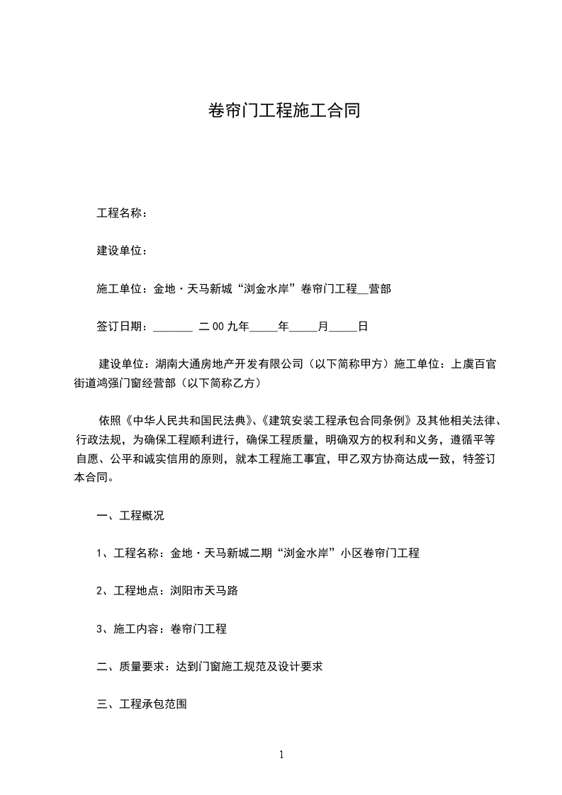 1、工程名称:金地·天马新城二期“浏金水岸”小区卷帘门工程