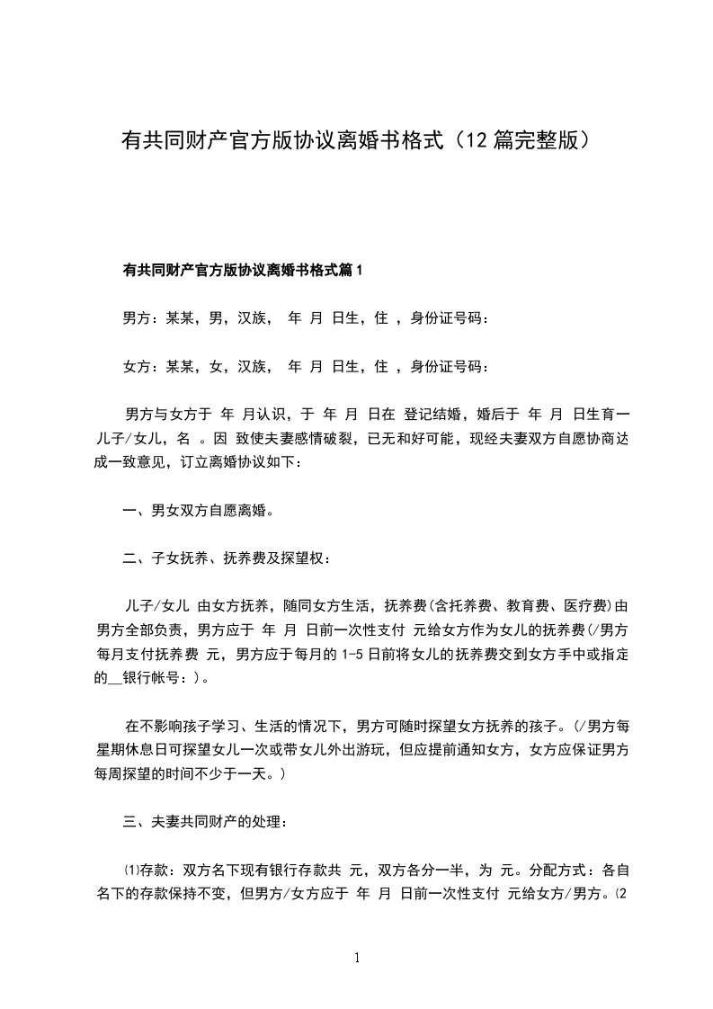 新版官方版协议离婚范本格式篇12