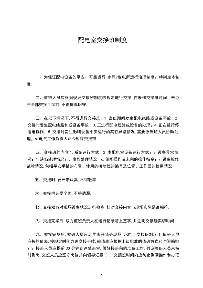 三、值班者必须在交班前完成本班的各项工作,遇有特殊情况必须做详细交待,与接班者共同做好工作方可离去。交班者必须写好交班报告及各项文字记录单,处理好用过的物品。