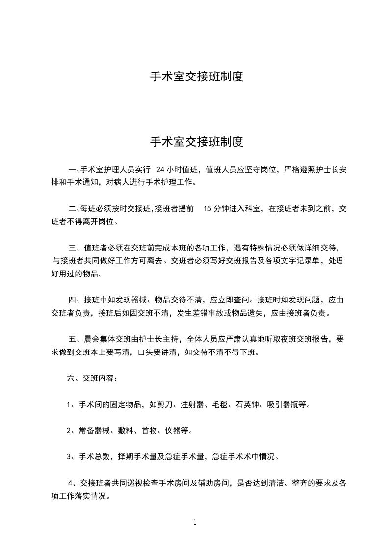 手术室交接班制度