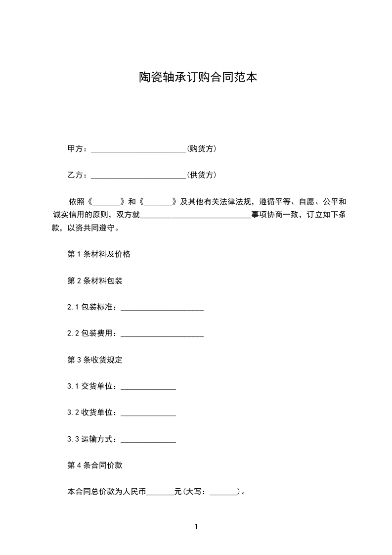 陶瓷轴承售卖合同