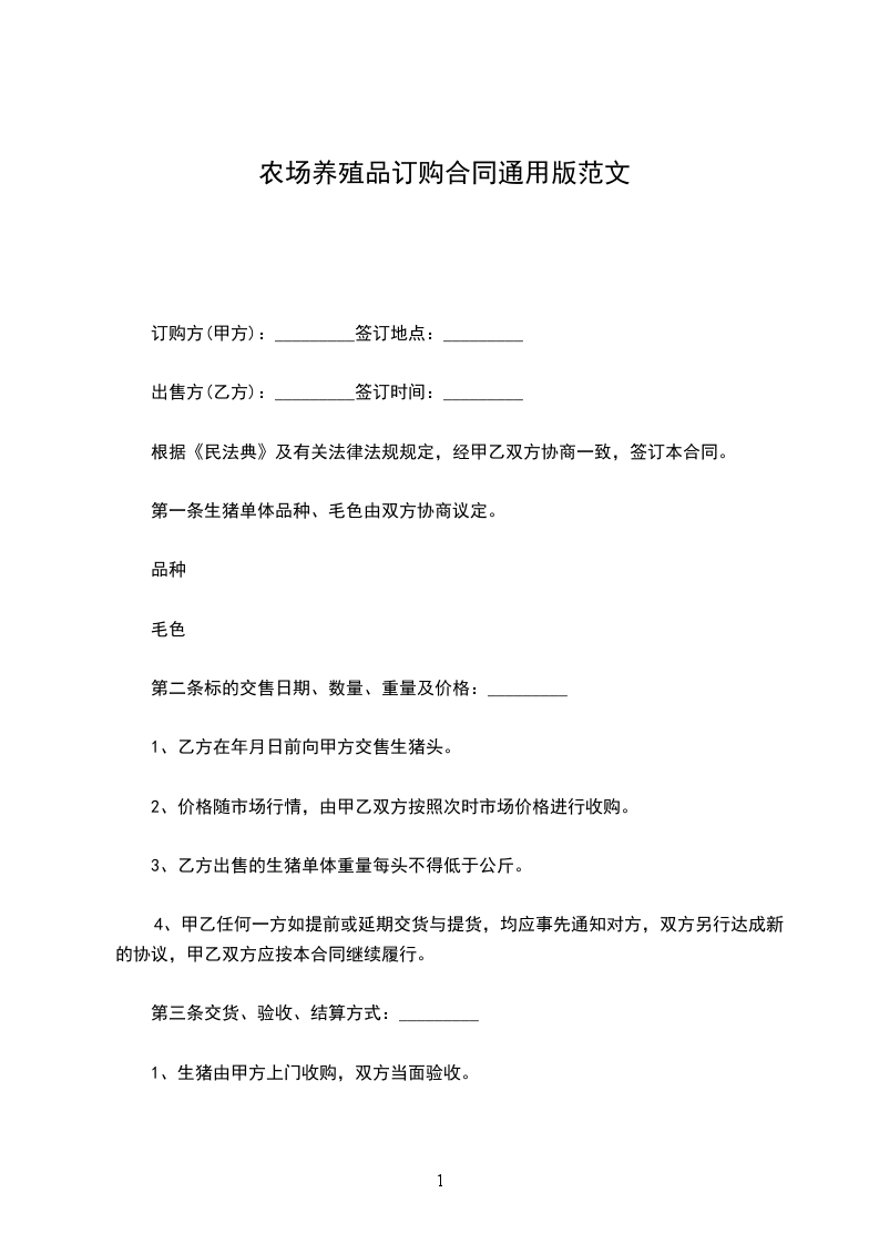 第一条生猪单体品种、毛色由双方协商议定。