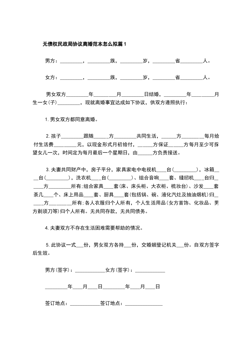 无债权民政局协议离婚范本怎么拟篇9