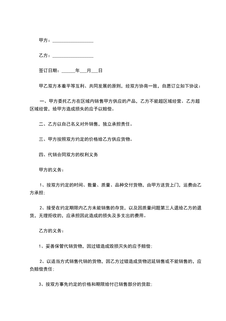 一、甲方委托乙方在区域内销售甲方供应的产品,乙方不能超区域经营。乙方超区域经营,给甲方造成损失的应予以赔偿。