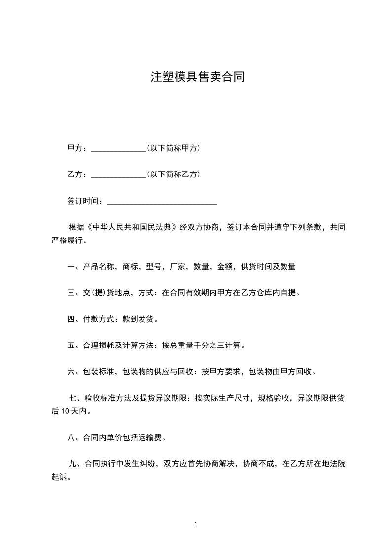 注塑模具购销合同