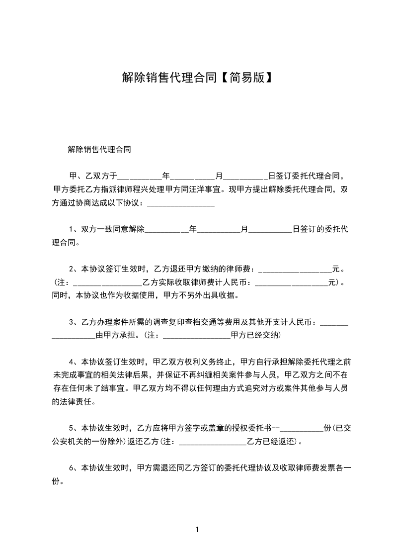 1、原《》自________年____月____日解除,自解除之日起,原合同协议中约定的双方权利义务终止;