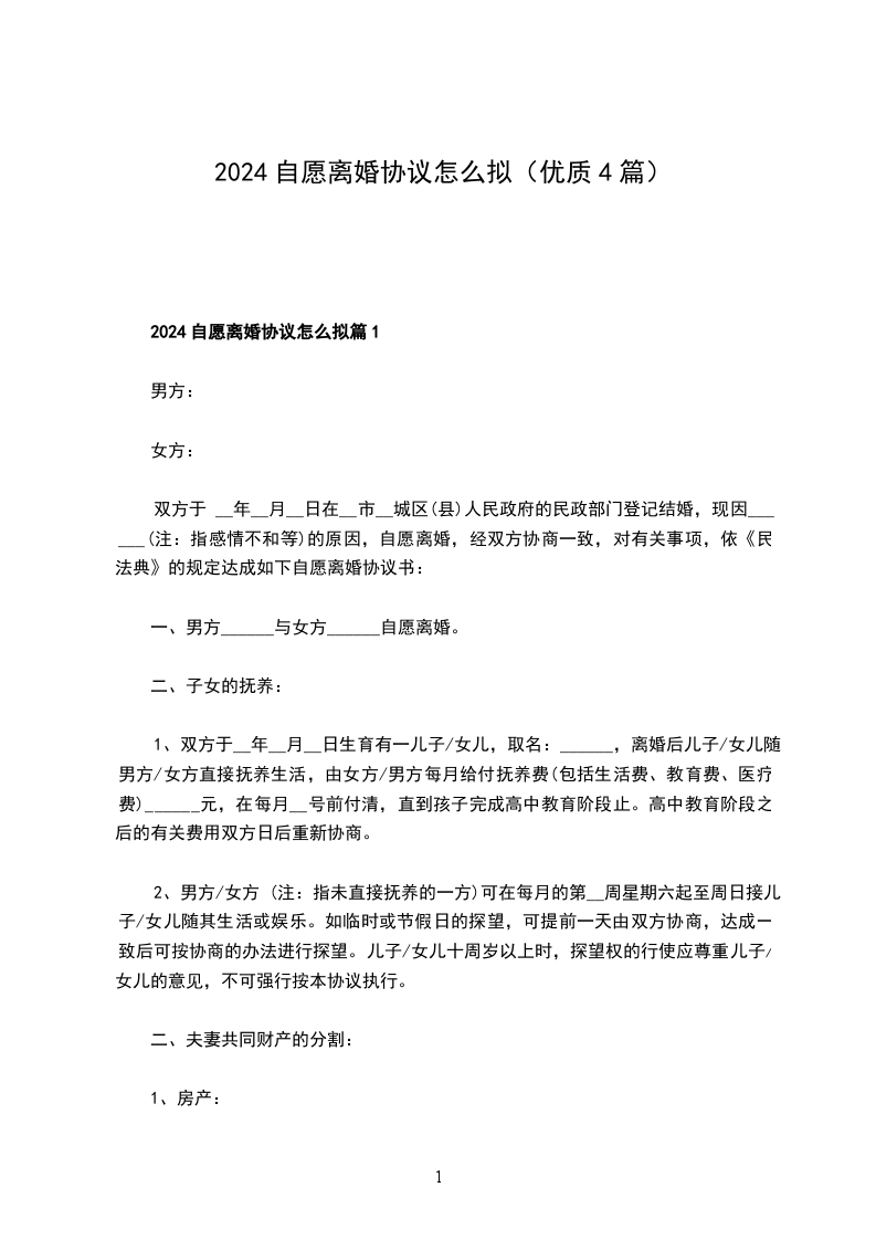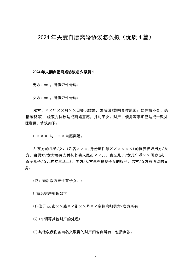 男女双方_________年_________月_________日结婚,_________年_________月生一女(子)_________,现就离婚事宜达成如下协议,供双方遵照执行:
