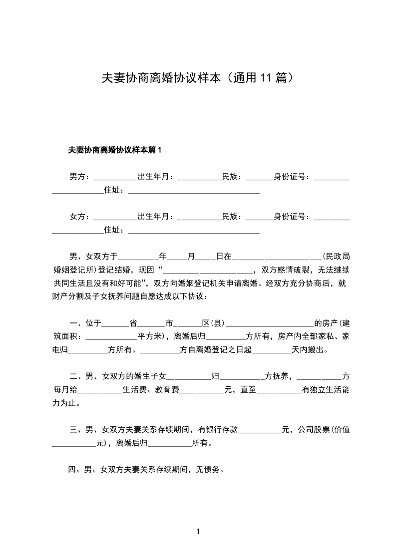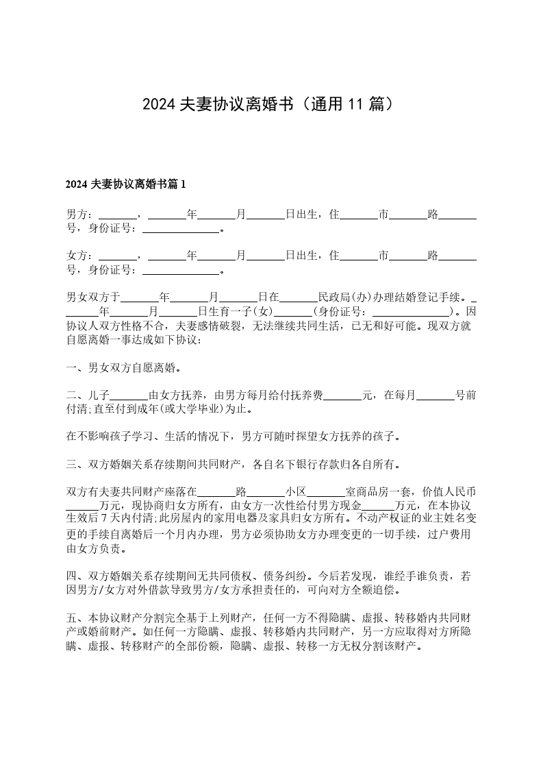 2024夫妻协商离婚协议参考样本篇11