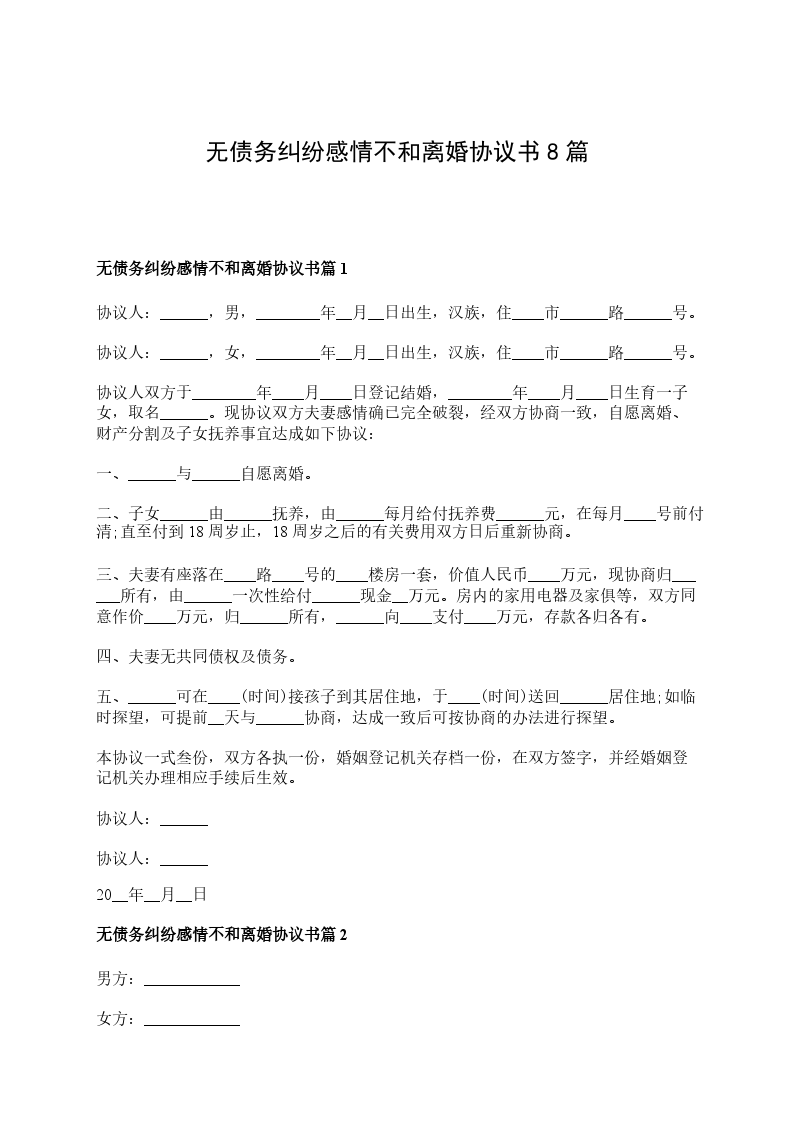 无债务纠纷感情不和离婚协议书篇8