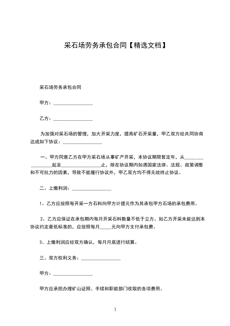 1、乙方应按照每开采一方石料向甲方计提 元作为其承包甲方石场的承包费用。