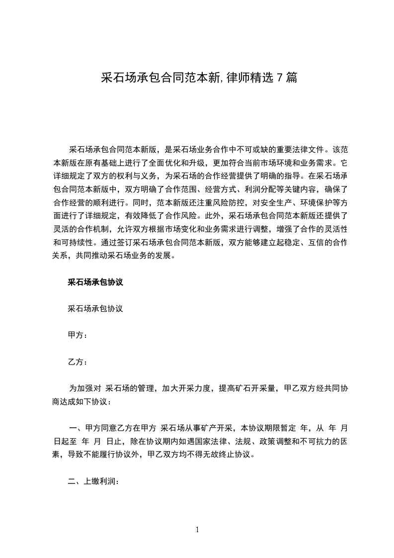 为加强对 采石场的管理,加大开采力度,提高矿石开采量,甲乙双方经共同协商达成如下协议: