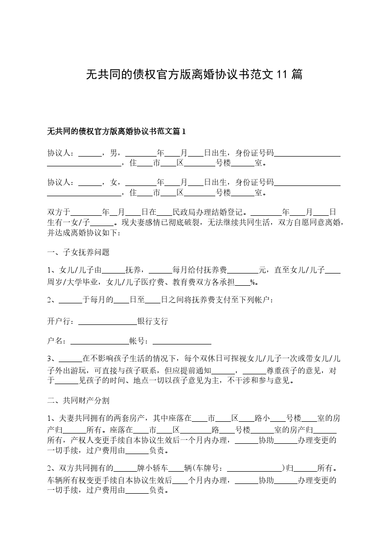 无共同的债权官方版离婚协议书如何写篇11