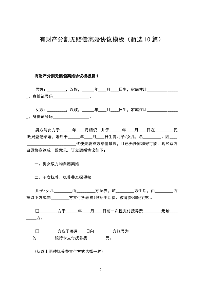 本协议一式_______份,双方各执_______份,婚姻登记机关存档_______份,在双方签字,并经婚姻登记机关办理相应手续后生效。