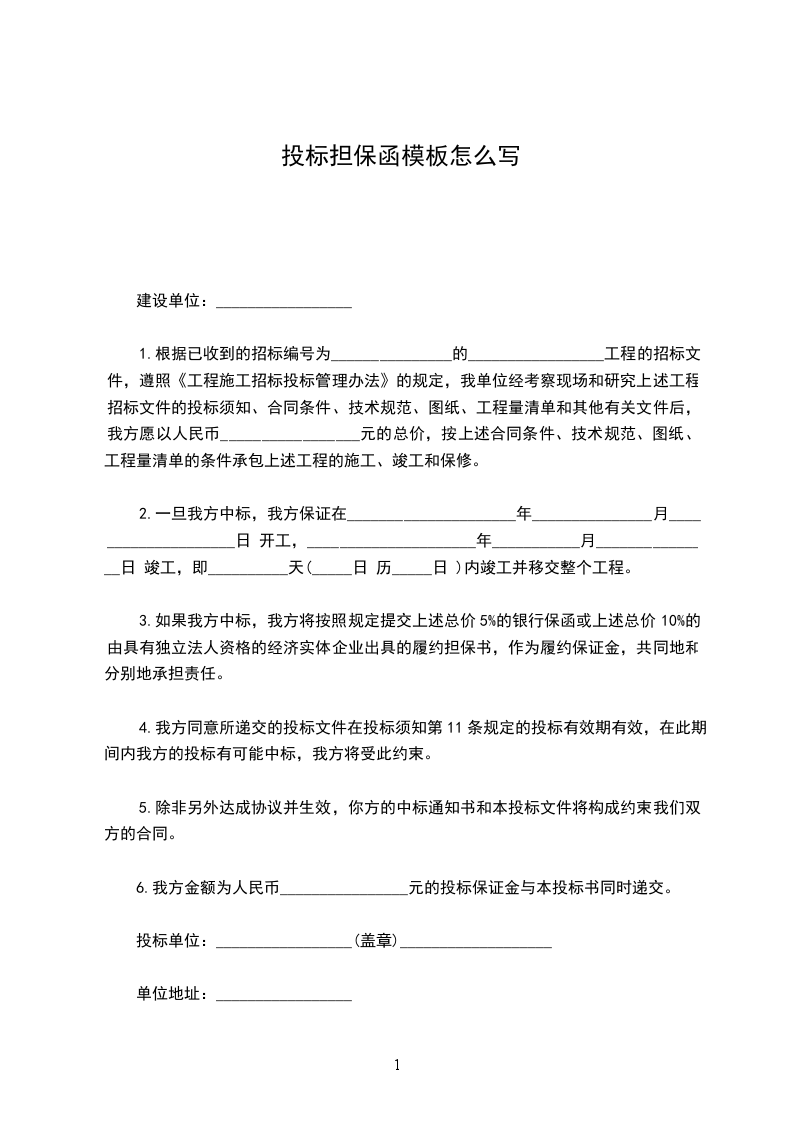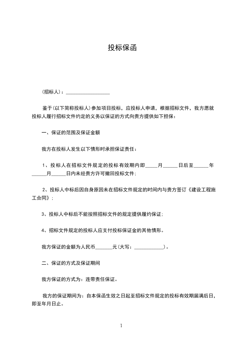 鉴于(以下简称投标人)参加项目投标,应投标人申请,根据招标文件,我方愿就投标人履行招标文件约定的义务以保证的方式向贵方提供如下担保: