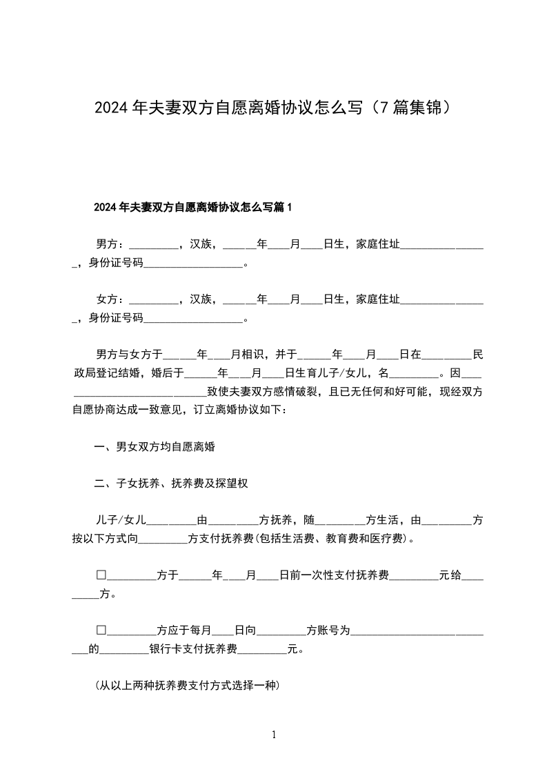 2024年夫妻双方自愿离婚协议怎么写篇1