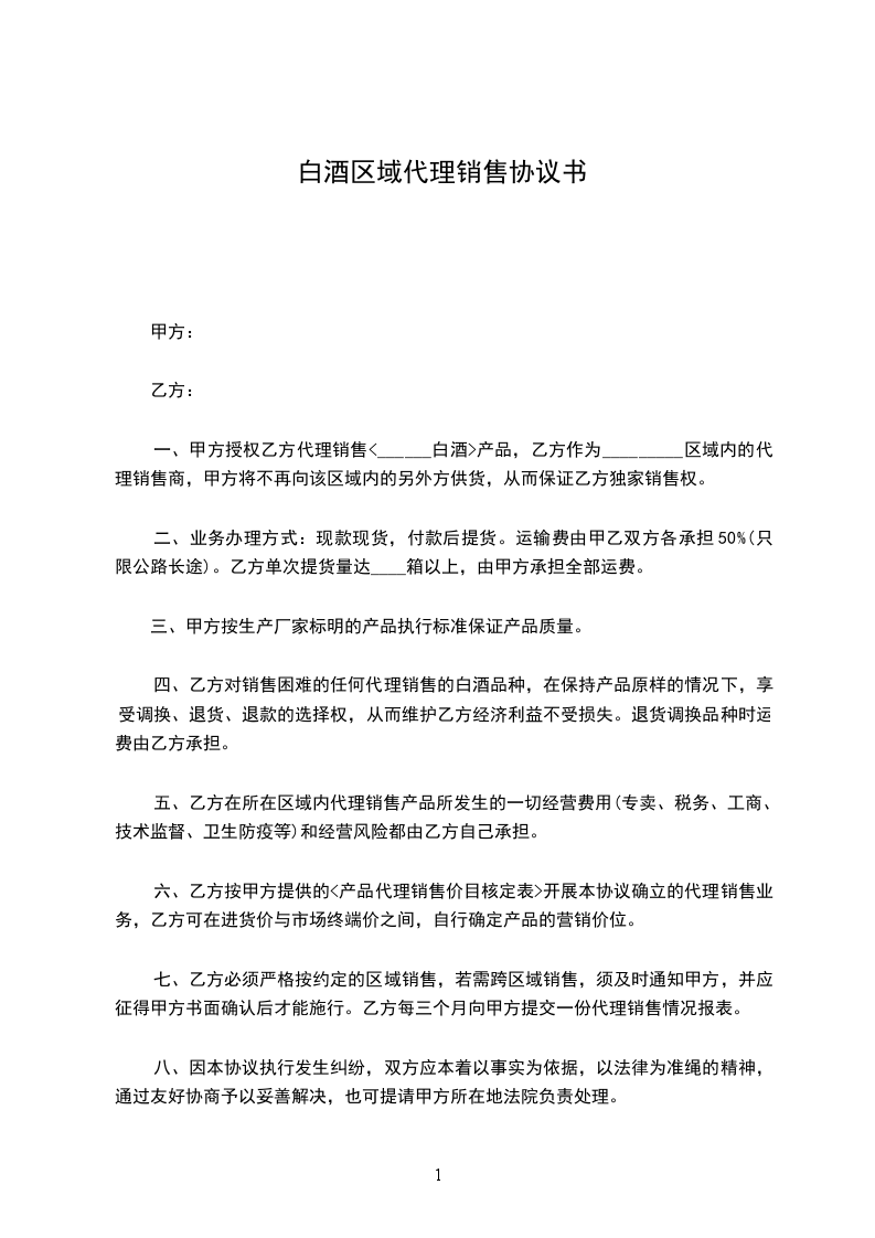 1、乙方在本区域内进行产品推广行为时,必须严格遵守国家及地方相关法规,否则造成的一切后果由乙方承担