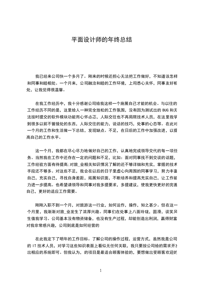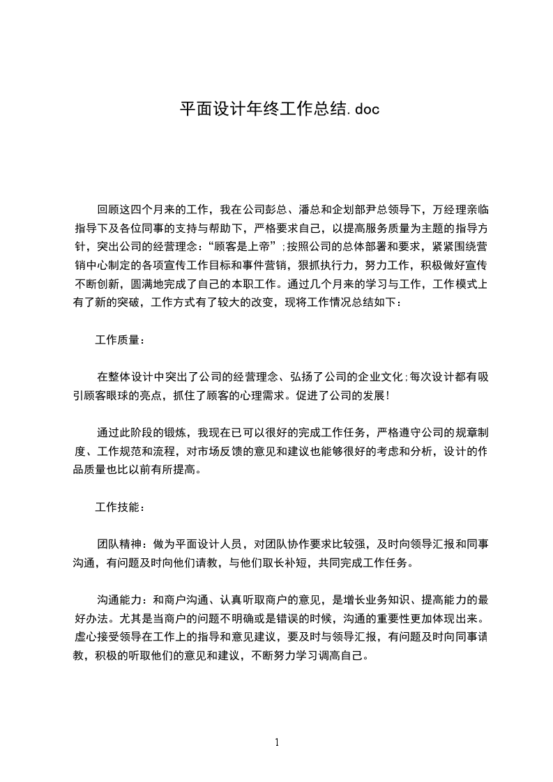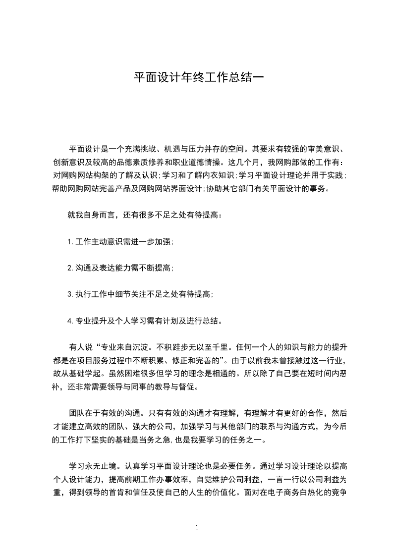 20__年的时间里,我对公司工作流程,方法等有了较深的了解与认识,对平面设计规范也有了一定的了解。能力来源于实践,实践检验能力;一年来,我对自己的坚持一步一步地脚踏实地走过来,加深自己对平面设计的理解,能轻松的作出一般的平面方案的设计效果图,但是还需要不断的学习和实践。