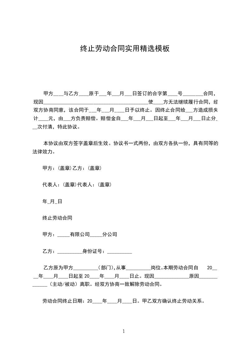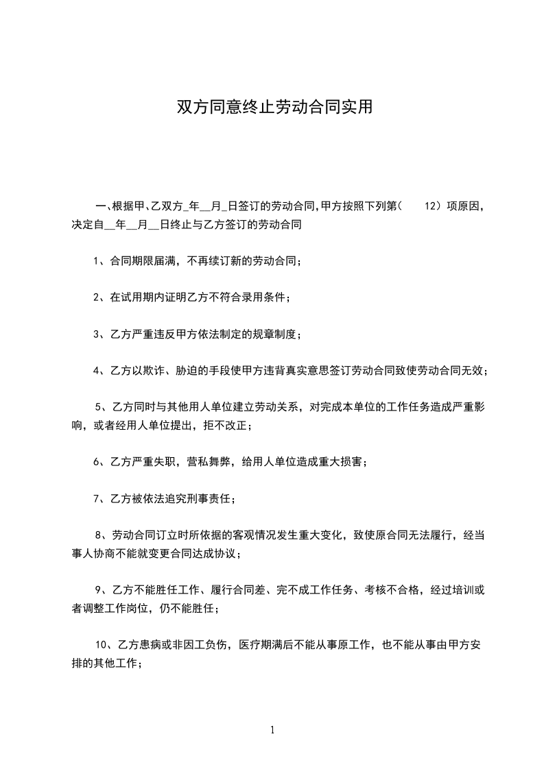 因__________原因,乙方向甲方申请终止劳动合同,经双方协商,订立本协议,以便共同遵守。