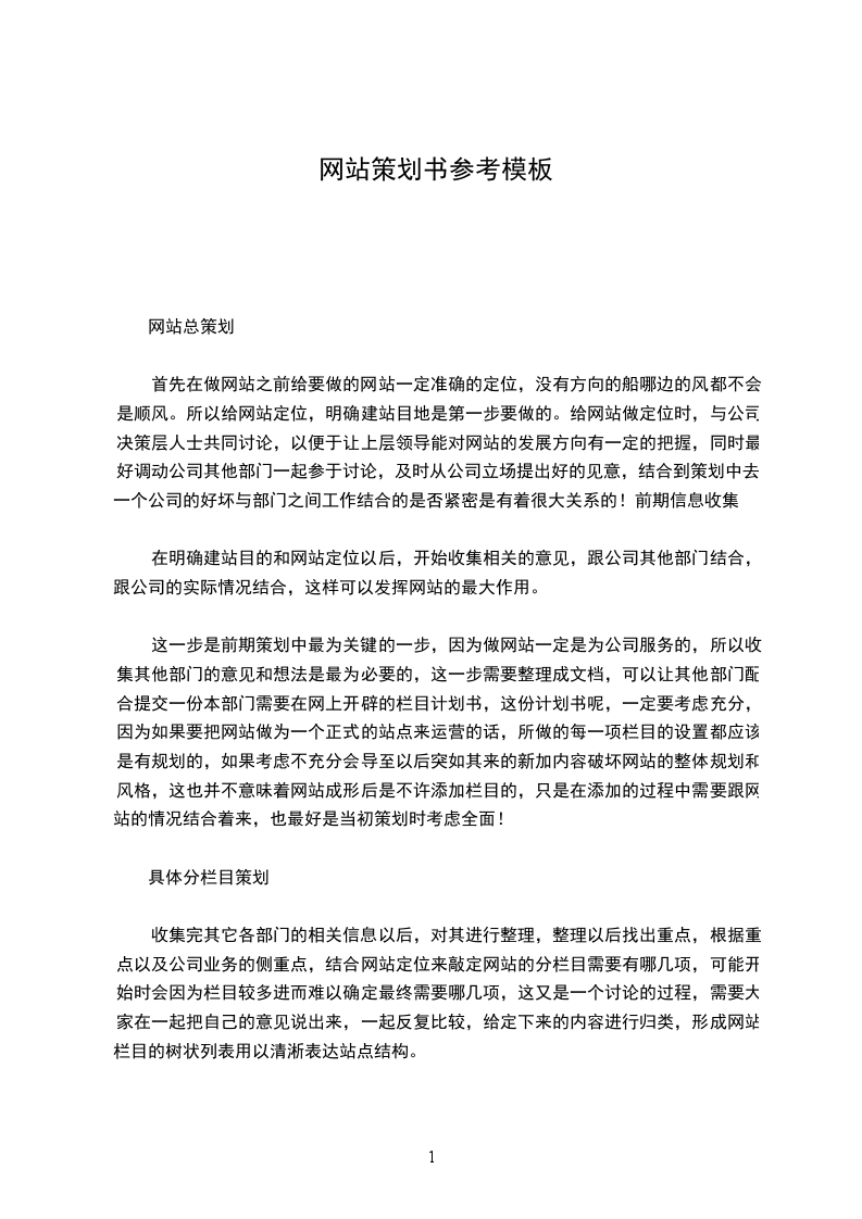 这一步是前期策划中最为关键的一步,因为做网站一定是为公司服务的,所以收集其他部门的意见和想法是最为必要的,这一步需要整理成文档,可以让其他部门配合提交一份本部门需要在网上开辟的栏目计划书,这份计划书呢,一定要考虑充分,因为如果要把网站做为一个正式的站点来运营的话,所做的每一项栏目的设置都应该是有规划的,如果考虑不充分会导至以后突如其来的新加内容破坏网站的整体规划和风格,这也并不意味着网站成形后是不许添加栏目的,只是在添加的过程中需要跟网站的情况结合着来,也最好是当初策划时考虑全面!