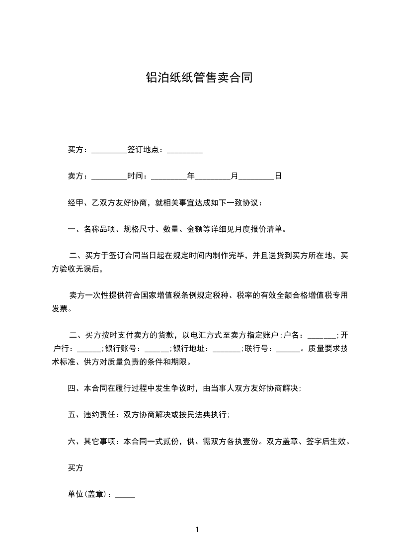 六、其它事项:本合同一式贰份,供、需双方各执壹份。双方盖章、签字后生效。