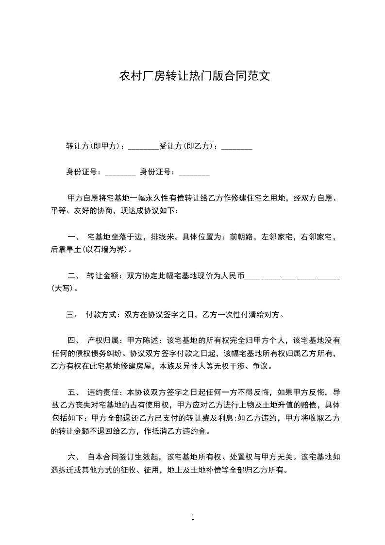 二、 转让金额:双方协定此幅宅基地现价为人民币________________________ (大写)。