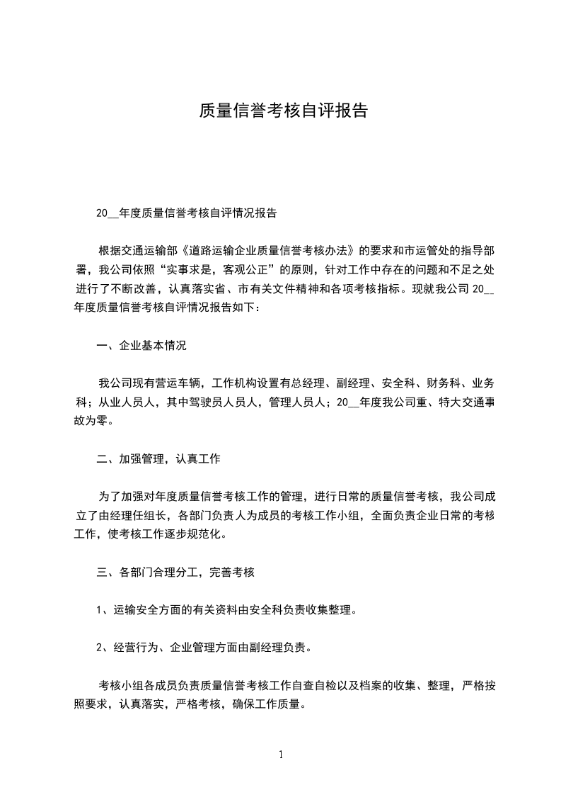 我公司按照交通局资交运的文件要求,结合企业安全管理工作实际情况,对20__年度的质量信誉工作按照《通知》要求及标准开展了自查,自评及整改工作,现将情况总结如下: