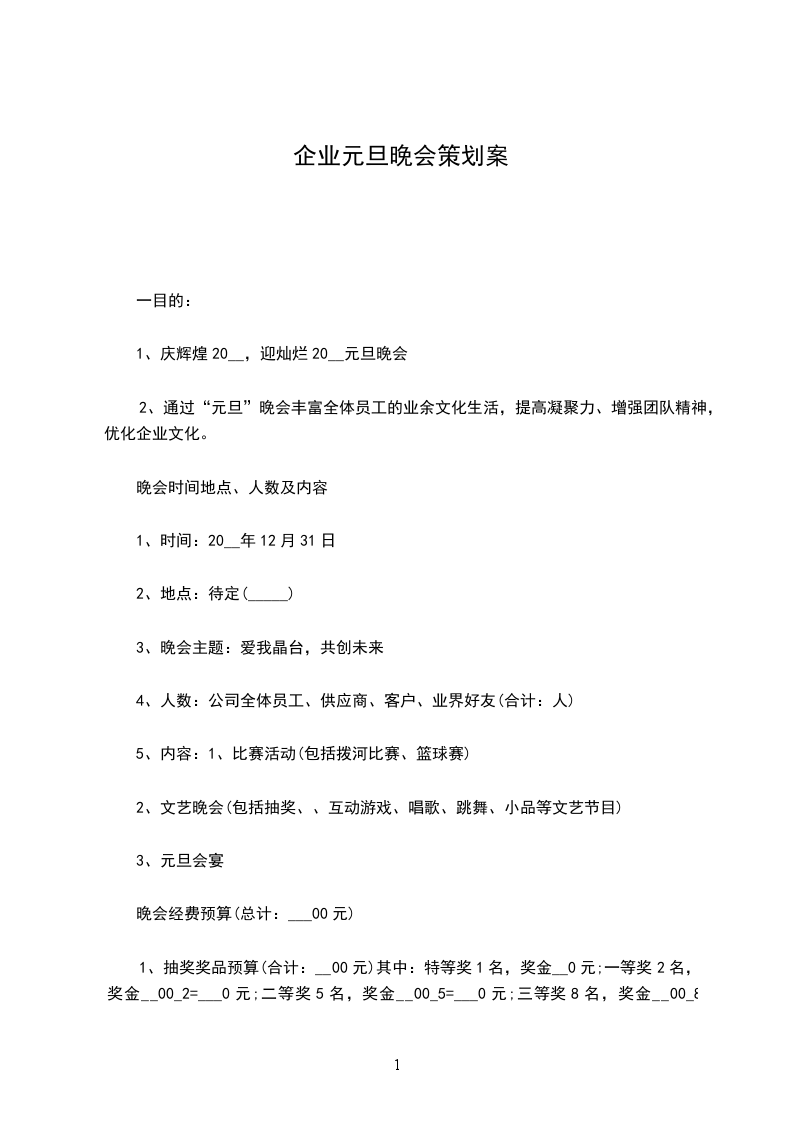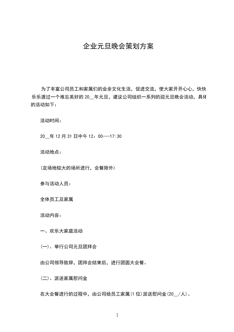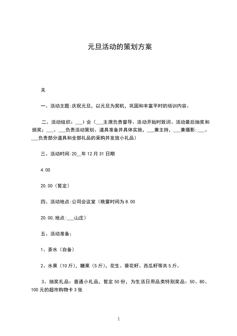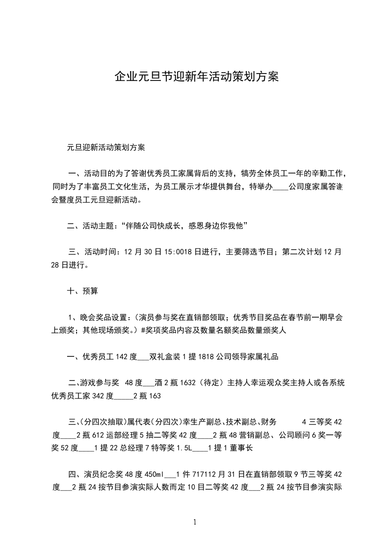 为庆祝20__年元旦,丰富员工节日生活,营造的企业文化,综合管理部计划组织20__年元旦联欢汇演,相关事宜计划如下: