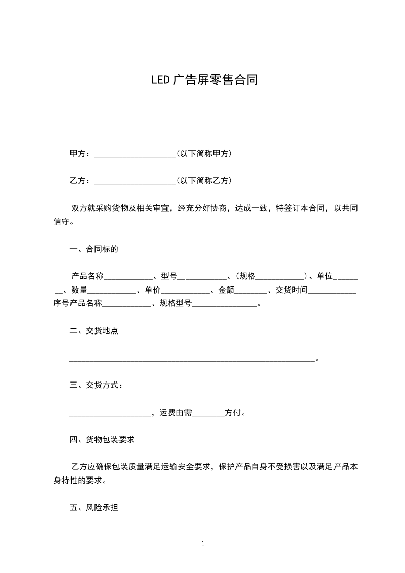 产品名称____________、型号____________、(规格____________)、单位________、数量____________、单价____________、金额________、交货时间____________、序号产品名称____________、规格型号________________。