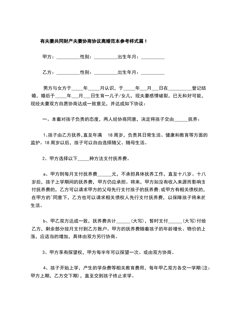 夫妻协商协议离婚书参考样板篇4