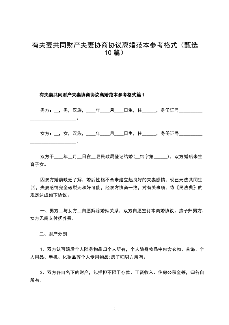 夫妻协商协议离婚书参考样板篇10