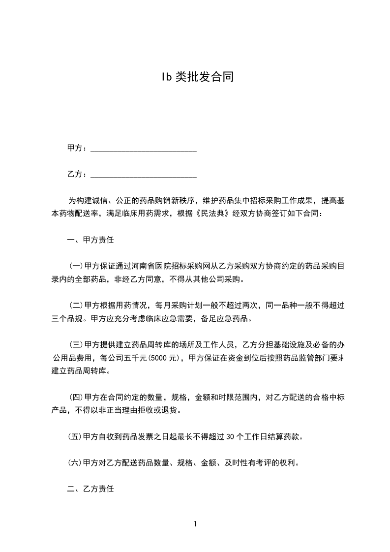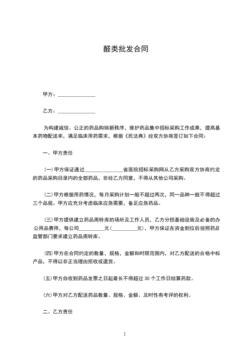为构建诚信、公正的药品购销新秩序,维护药品集中招标采购工作成果,提高基本药物配送率,满足临床用药需求,根据《民法典》经双方协商签订如下合同: