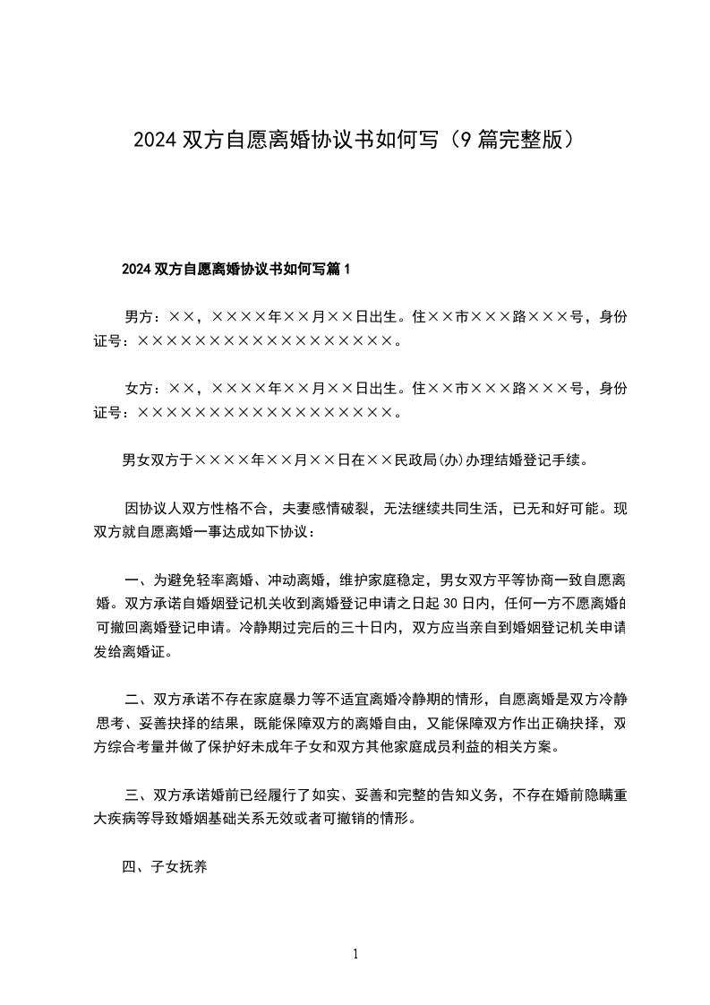 甲乙双方于___年___月___日在县(区)婚姻登记部门办理结婚登记手续,结婚证号码 。 婚后 于 ___年___月___日 生育一名 ,名。因双方性格不合无法共同生活,夫妻感情完全破裂,已无和好可能,现双方就自愿离婚一事达成如下协议: