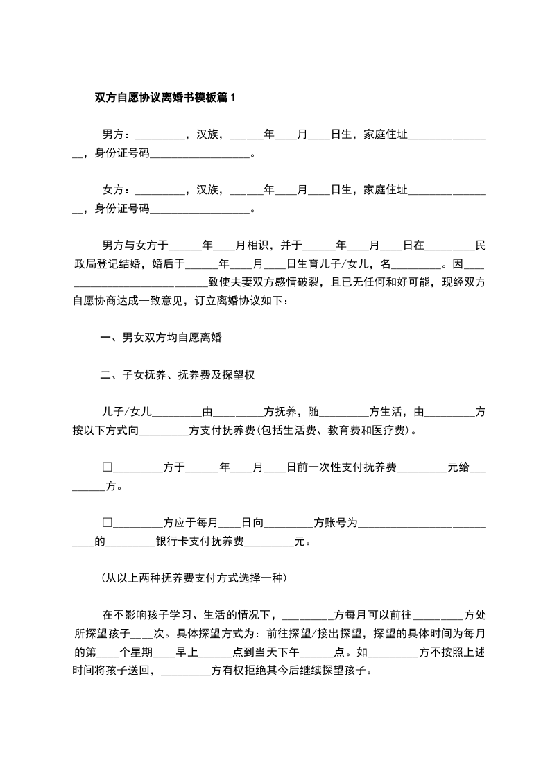1、双方于_______年_______月_______日生育一女儿,取名:________,于_______年_______月_______日生育一儿子,取名:_______。离婚后儿子及女儿随男方直接抚养生活。