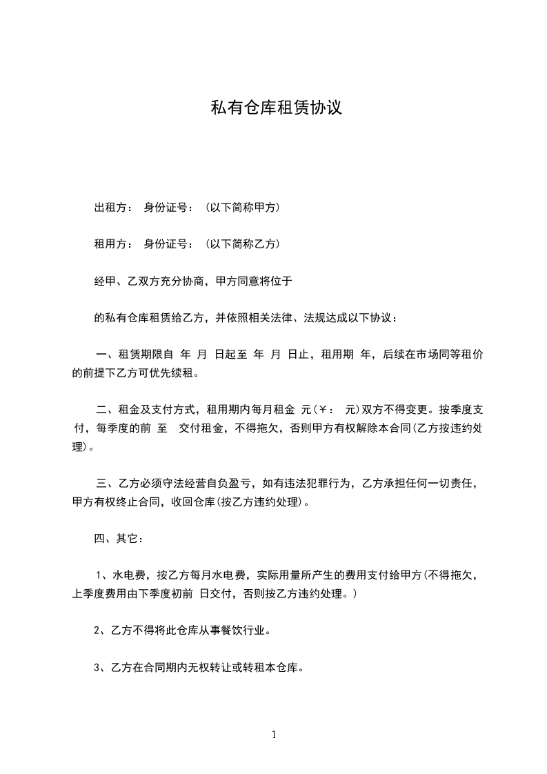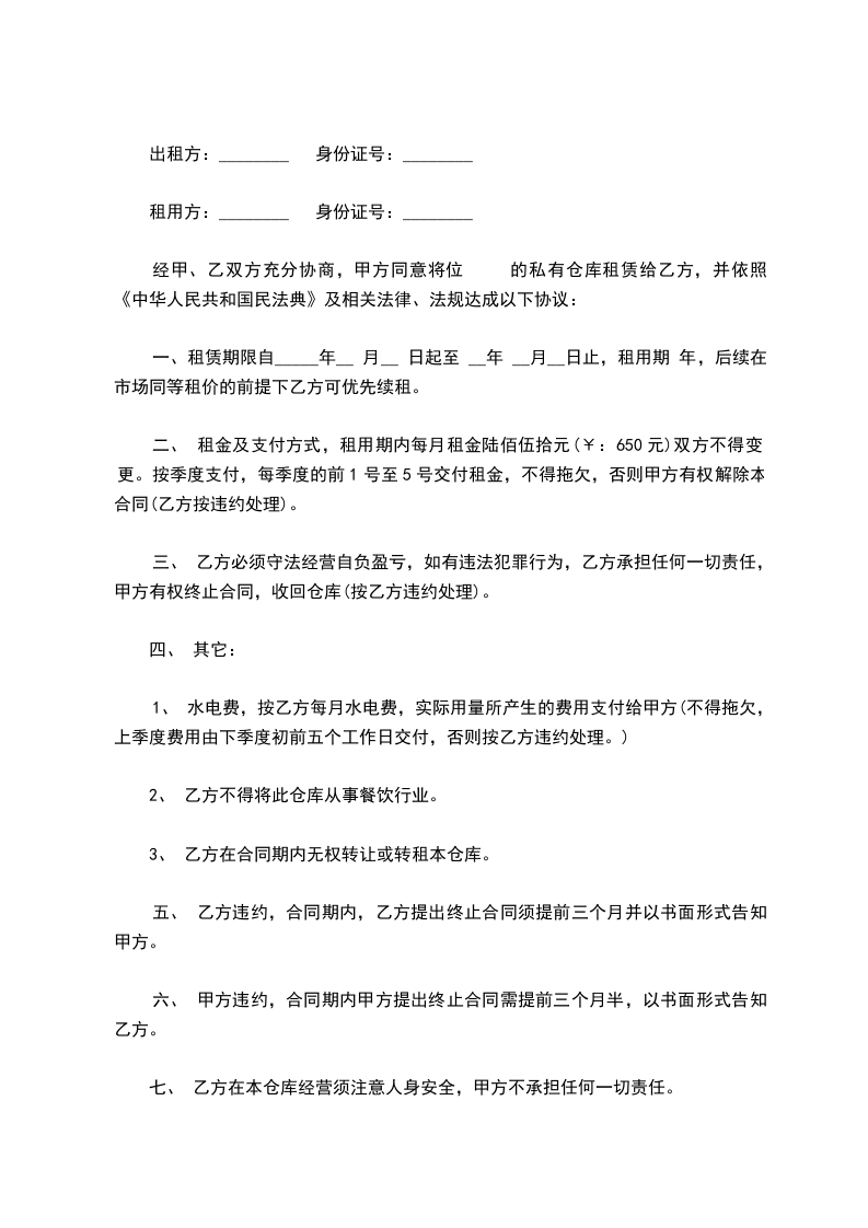 仓库营业人________以下简称甲方