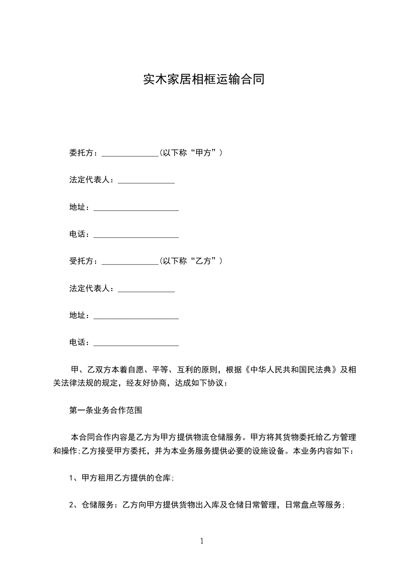 五、运输费用:合同货物运输费用由甲方承担。