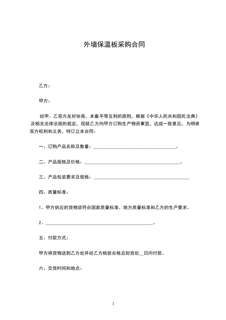 1、甲方供应的货物须符合国家质量标准、地方质量标准和乙方的生产要求。