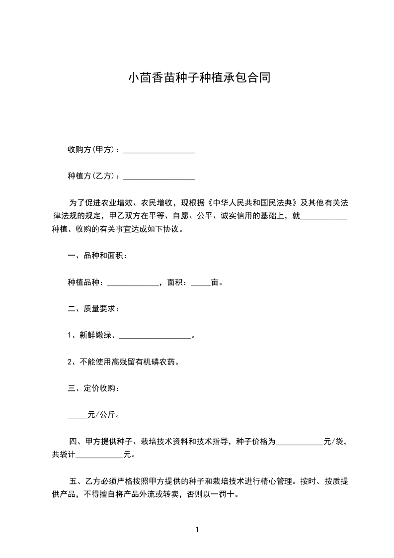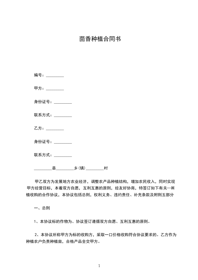 1、本协议标的作物为、协议签订遵循双方自愿、互利互惠的原则。