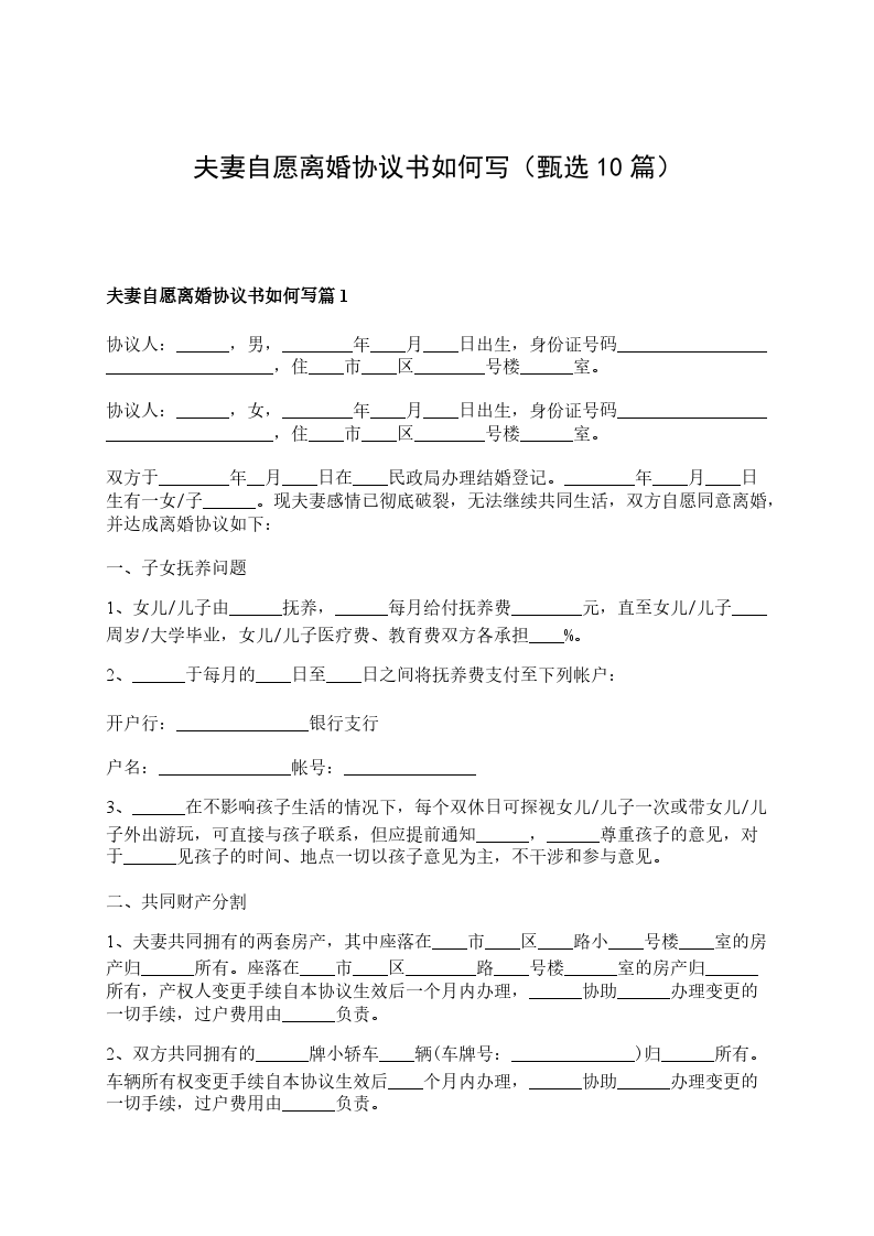 夫妻自愿协议离婚范本参考格式篇10