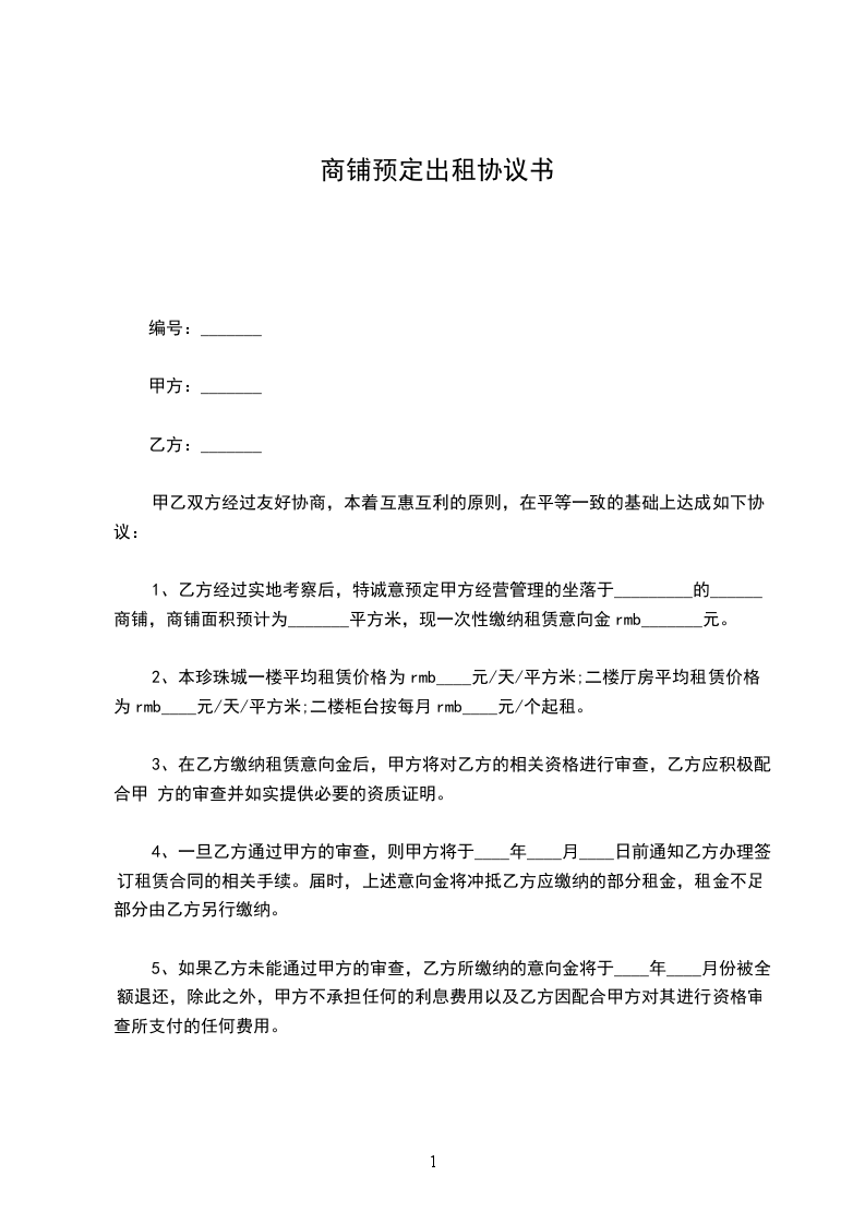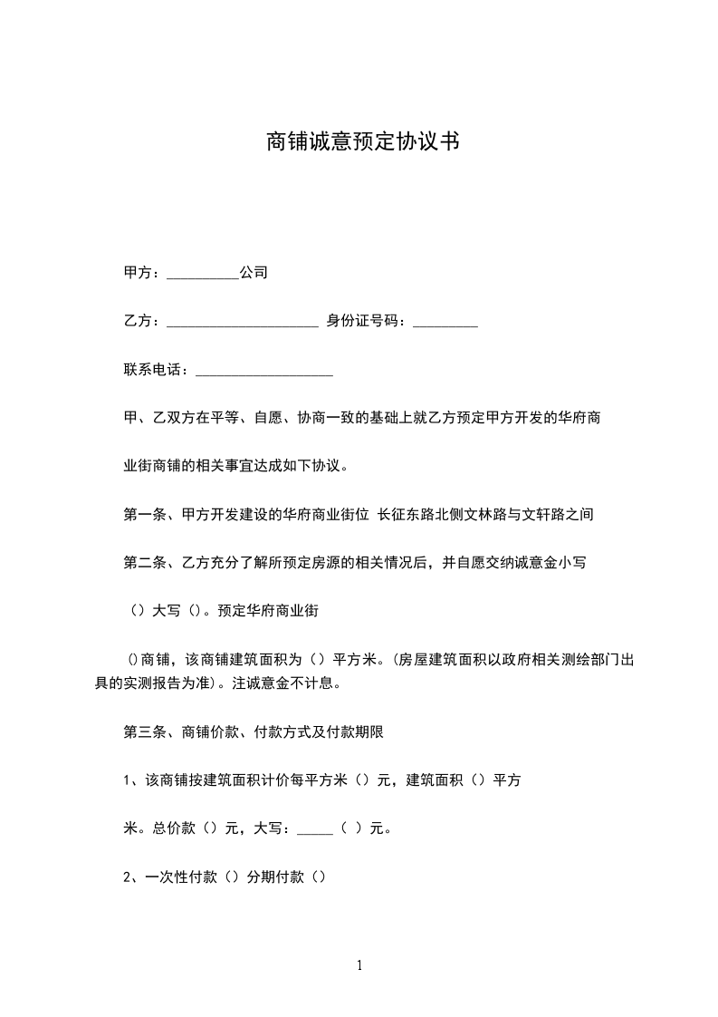 天,则甲方有权解除本协议,并将乙方所预定的商铺另行出售,诚意金不予退还。