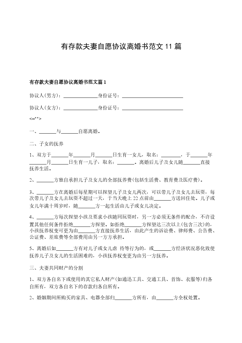 有存款夫妻自愿协议离婚书范文篇11