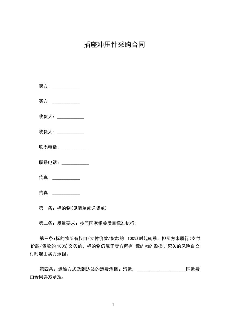1、乙方未按合同规定品名、品级、数量交货,应向甲方偿付少交部分总价值_____%的违约金。