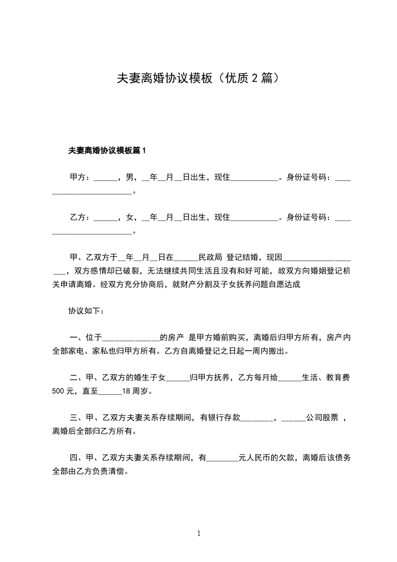 本协议一式三份,一份二张,男、女双方各执一份,婚姻登记机关存档一份,自婚姻登记机颁发《离婚证》之日起生效。