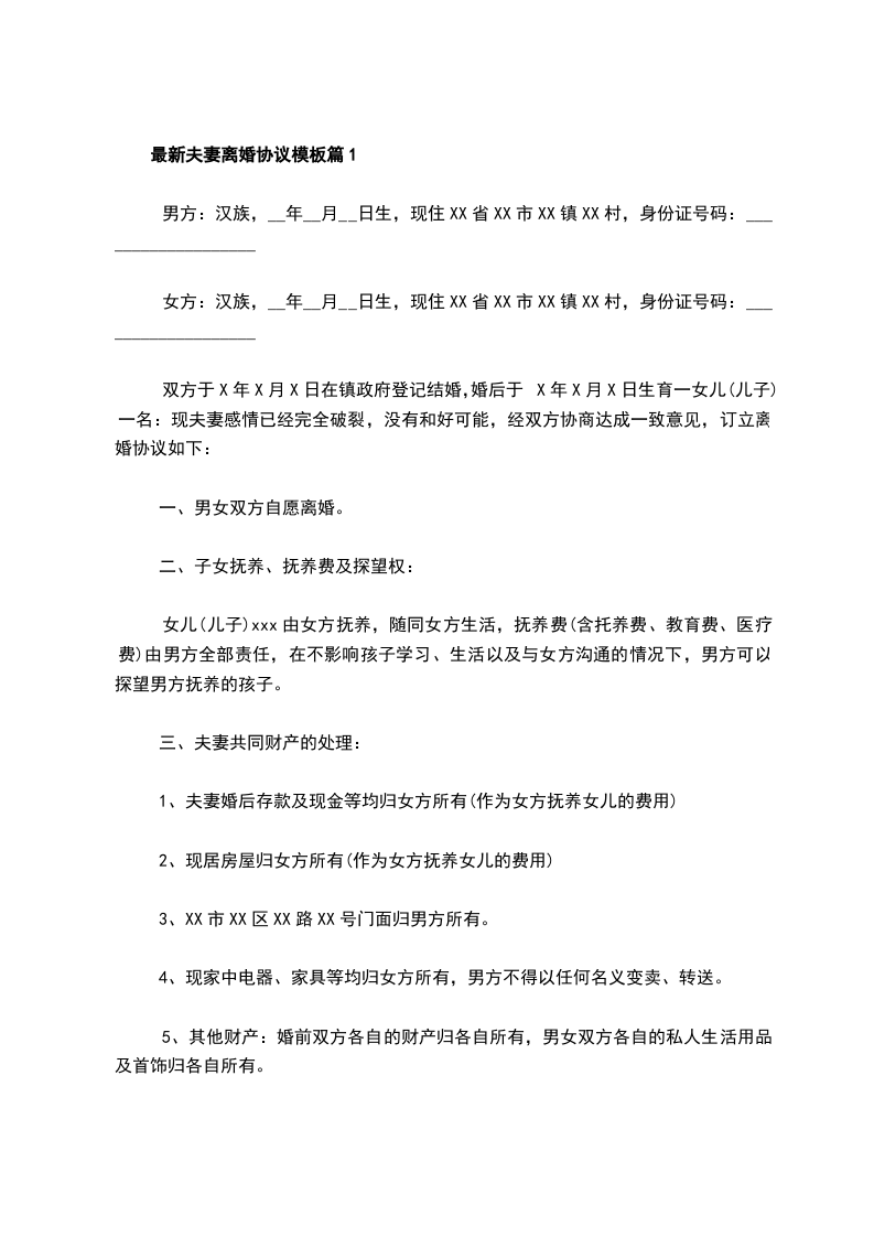 女方:汉族,__年__月__日生,现住XX省XX市XX镇XX村,身份证号码:___________________